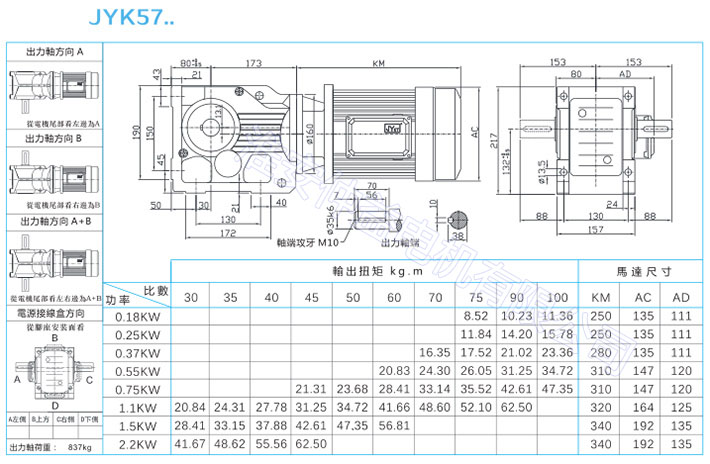 JYK軸直角-傘齒輪減速電機是一種由斜齒輪傳動弧齒輪錐齒輪傳動組成的新型直角減速傳動裝置。該裝置按照國際標(biāo)準(zhǔn)優(yōu)化設(shè)計,具有高精度、高效率、傳動比分級精細、范圍廣、傳動扭矩大、性能可靠、噪音低、安裝靈活、使用維護方便等優(yōu)點。廣泛應(yīng)用于各種低速、大扭矩直角傳動,是機械傳動的通用基礎(chǔ)件。