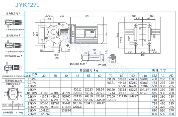 ⒉安裝方式:底腳安裝、空心軸安裝、法蘭安裝(大、小法蘭)、扭力臂安裝。