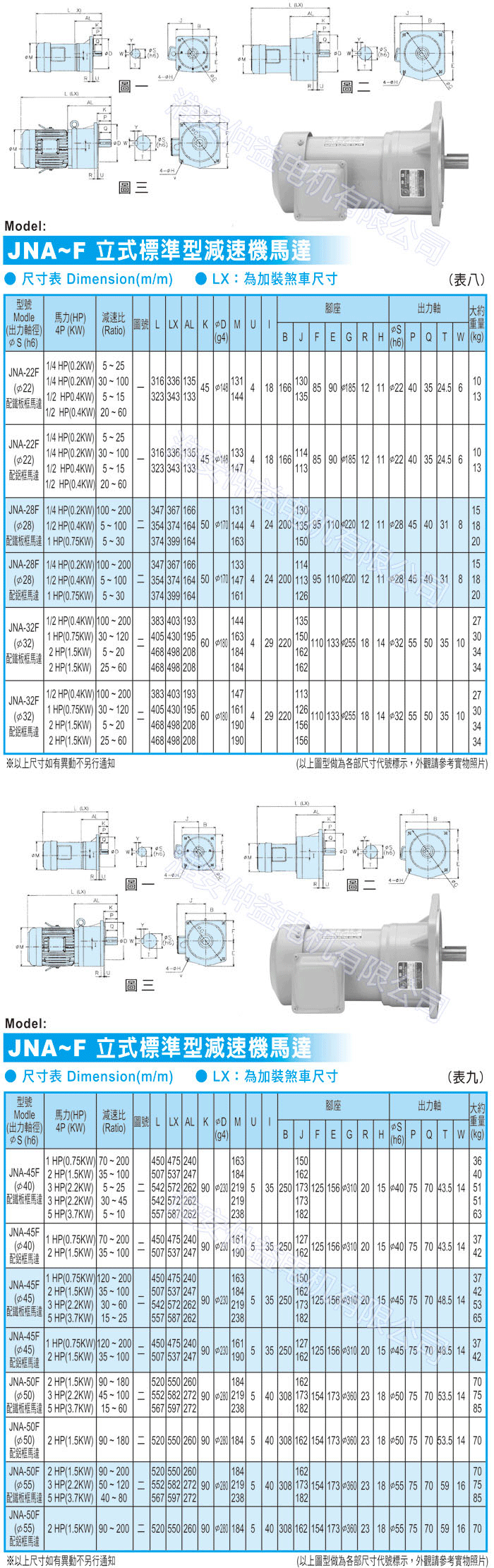 臥式:JNA-DS-22~JNA-DS-115