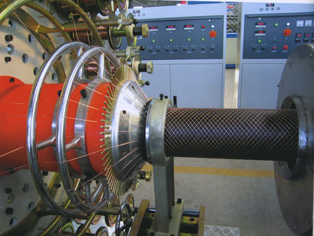 鋼絲網(wǎng)骨架聚乙烯復(fù)合管是以高強(qiáng)度鋼絲左右螺旋纏繞成型的網(wǎng)狀骨架為增強(qiáng)體,以高密度聚乙烯(HDPE)為基體,并用高性能的HDPE改性粘結(jié)樹(shù)脂將鋼絲骨架與內(nèi)、外層高密度聚乙烯緊密地連接在一起的一種新型管材。